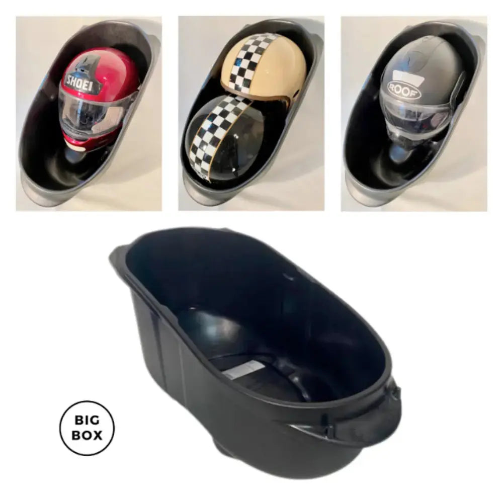 BIG BOX per Vespa Ăš un baule sotto-sella prodotto in Francia đ«đ·, progettato per offrire una soluzione di stivaggio pratica, sicura ed elegante. Con una capacitĂ di 22 litri, consente di riporre due caschi jet o un casco integrale o modulare, oltre ai tuoi effetti personali. BIG BOX semplifica le vostre soste e mette al sicuro la vostra attrezzatura senza alterare lo stile iconico della vostra Vespa.